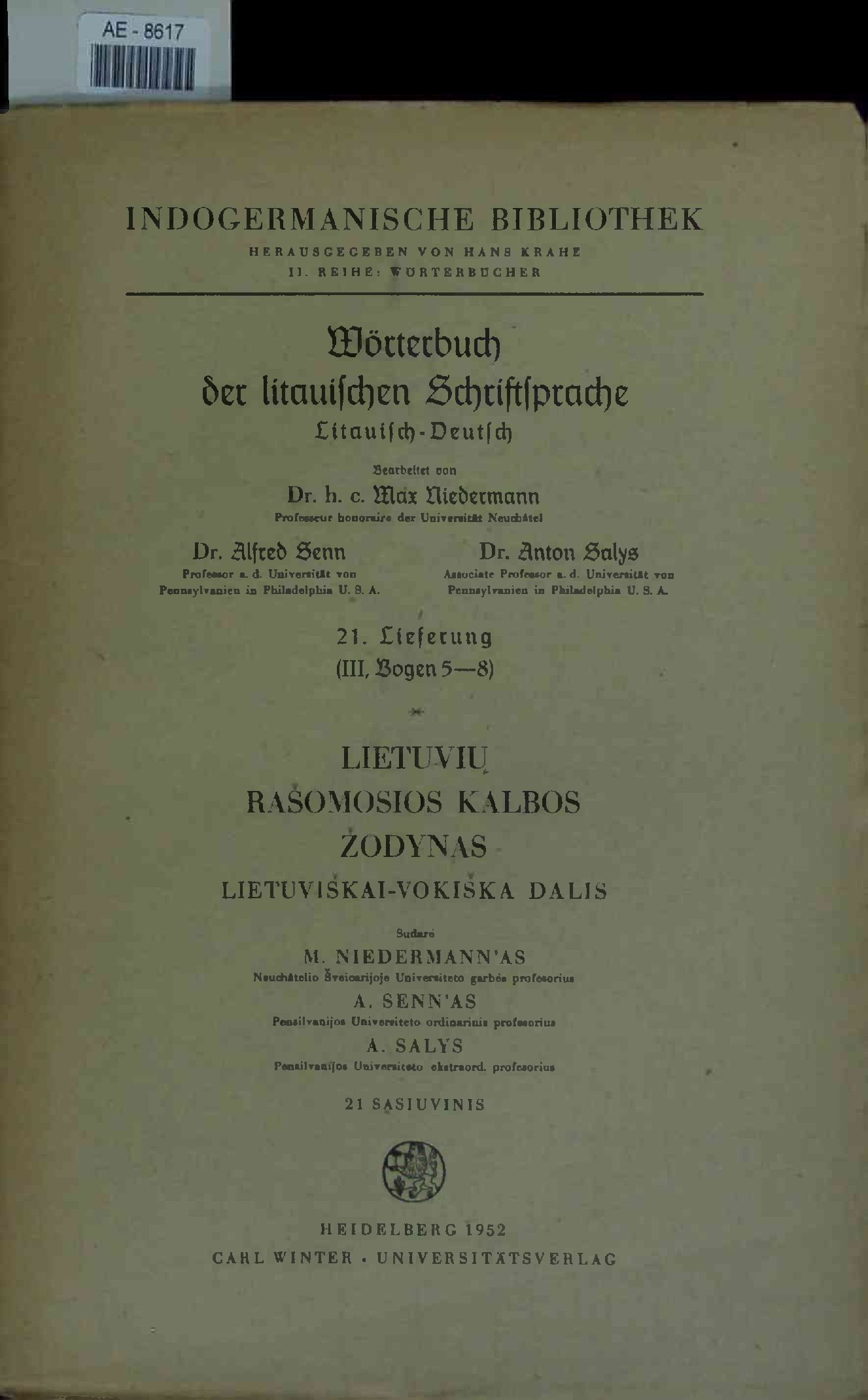 Lietuviu Rasomosios Kalbos Zodynas Lietuviskai-Vokiska Dalis. 8ereinzelpicken
