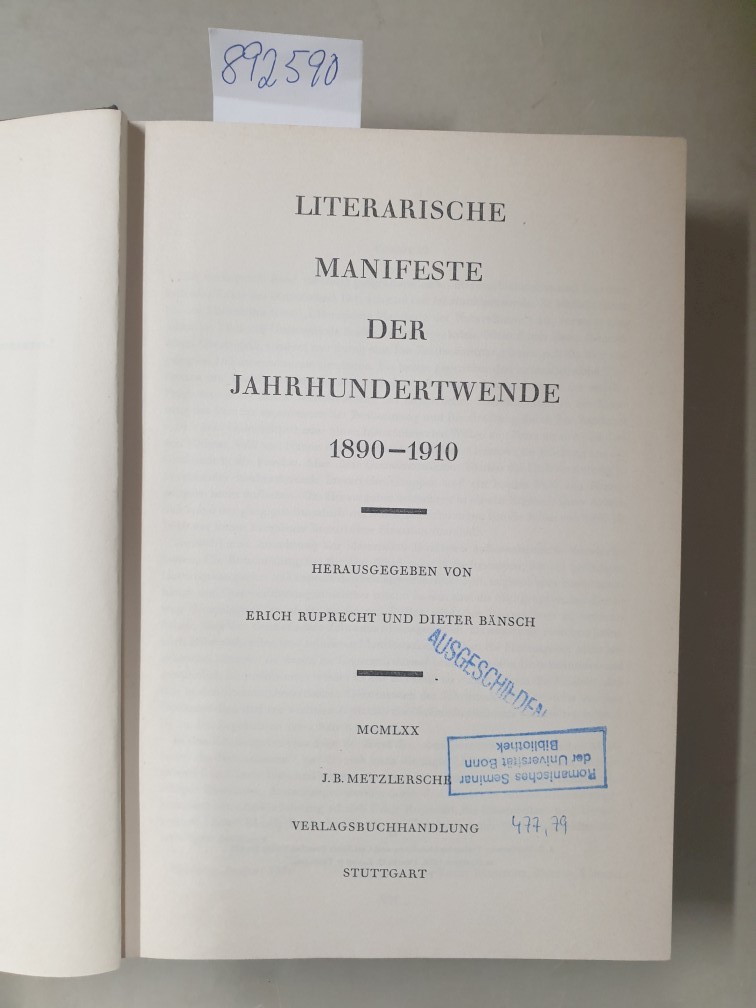 Literarische Manifeste der Jahrhundertwende, 1890-1910.