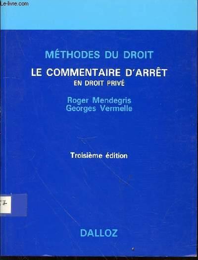 METHODES DU DROIT - LE COMMENTAIRE D'ARRET EN DROIT PRIVE.
