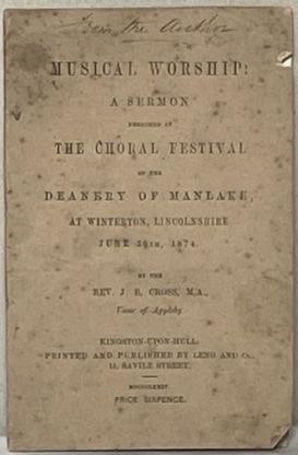 MUSICAL WORSHIP: A Sermon preached at The Choral Festival of the Deanery of Manlake, at Winterton, Lincolnshire June 30th, 1874.