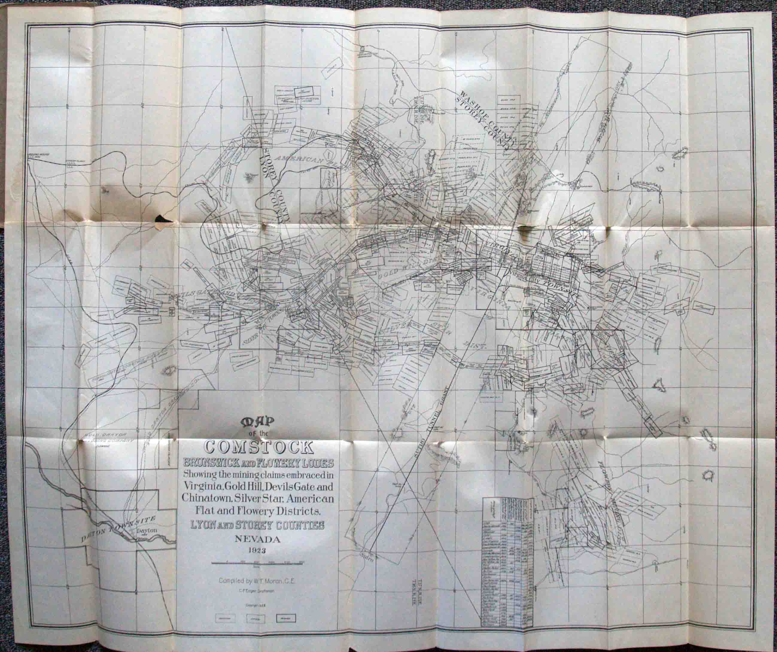 Map of the Comstock: Brunswick and Flowery lodes, showing the mining claims embraced in Virginia, Gold Hill, Devils Gate and Chinatown, Silver Star, American Flat and Flowery Districts, Lyon and Storey Counties, Nevada