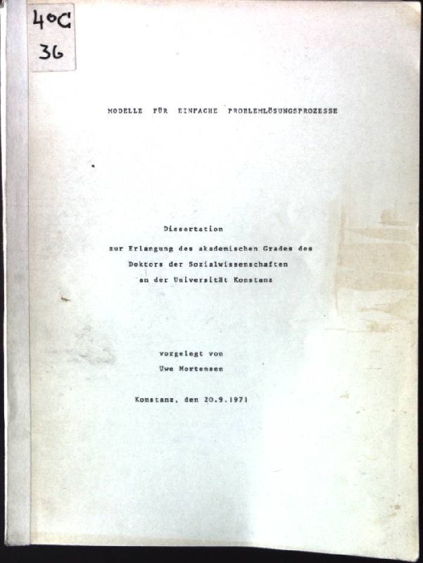 Modelle für einfache Problemlösungsprozesse Dissertation