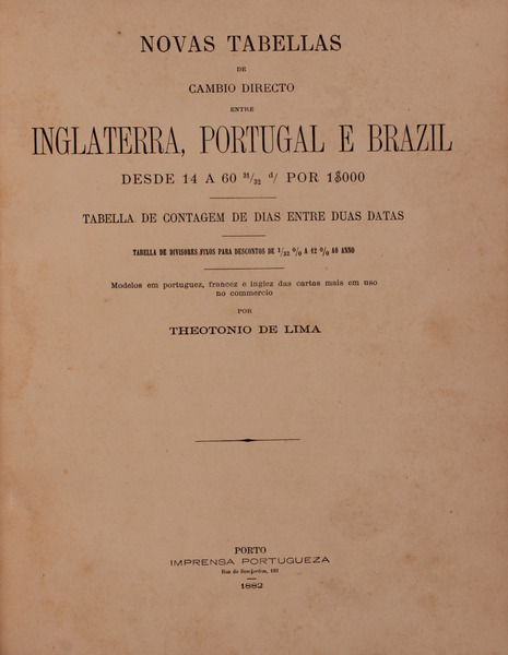 NOVAS TABELLAS DE CAMBIO DIRECTO ENTRE INGLATERRA, PORTUGAL E BRAZIL.