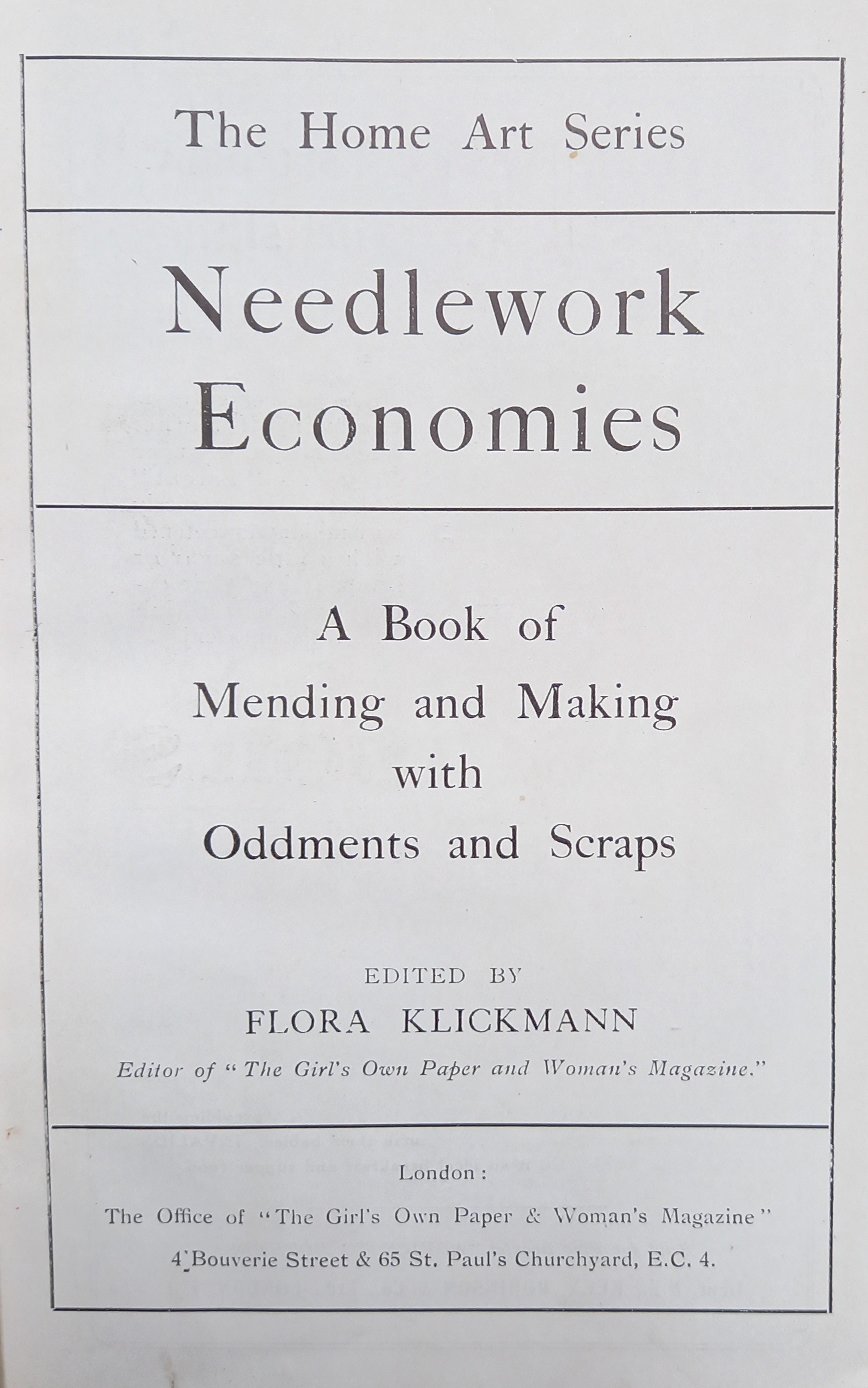 circa 1920, 113[1] pp, with advertisements front and rear, black & white illustrations to the text, diagrams, original printed paper-covered boards, a little browned on spine, some wear to corners. Published in The Home Art Series. Flora Klickmann (1867-1958) was the second editor of the 'Girl's Own Paper'. Seller Inventory # 7015