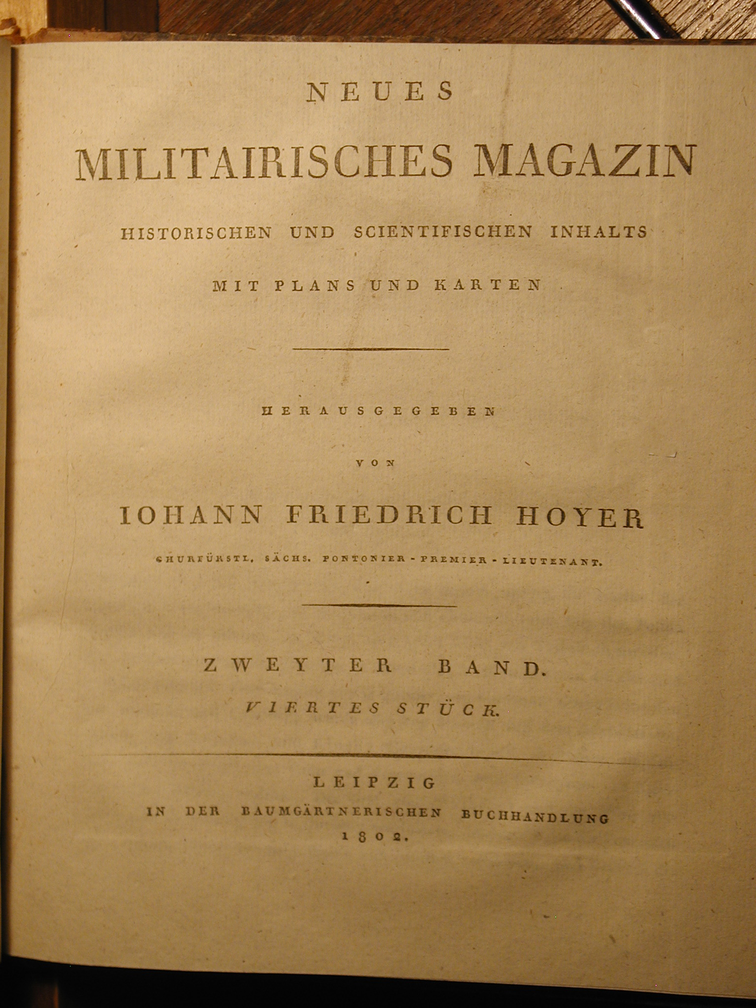 Add to basketNeues Militairisches magazin, Leipzig, 1801, In German. The listing price of $99 is for a single issue of the periodical. Several issues are available during the period indicated in the listing title. Please inquire about availability of specific issues, id3-009246.