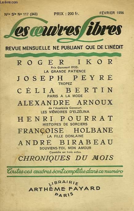 LES OEUVRES LIBRES. NOUVELLE SERIE N° 117. LA GRANDE PATIENCE PAR ROGER IKOR SUIVI DE TROPEZ PAR JOSEPH PEYRE SUIVI DE PARIS A LA MODE PAR CELIA BERTIN SUIVI DE HISTOIRES DE SORCIERS PAR HENRI POURRAT.