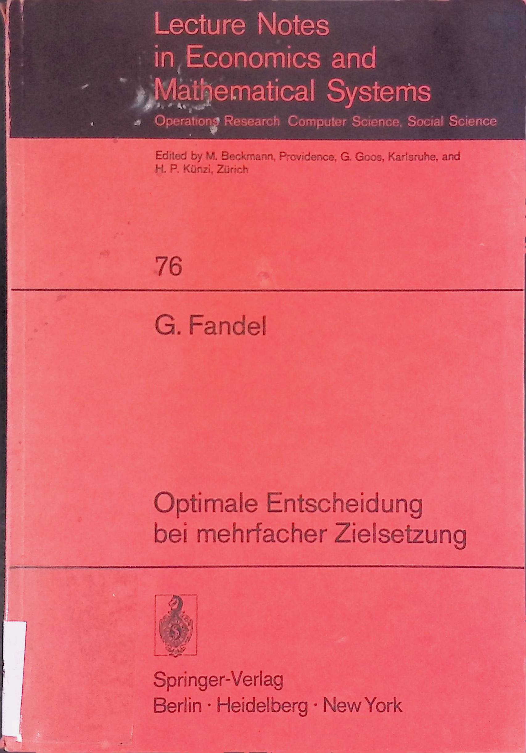 Optimale Entscheidung bei mehrfacher Zielsetzung. Lecture notes in economics and mathematical systems; 76.