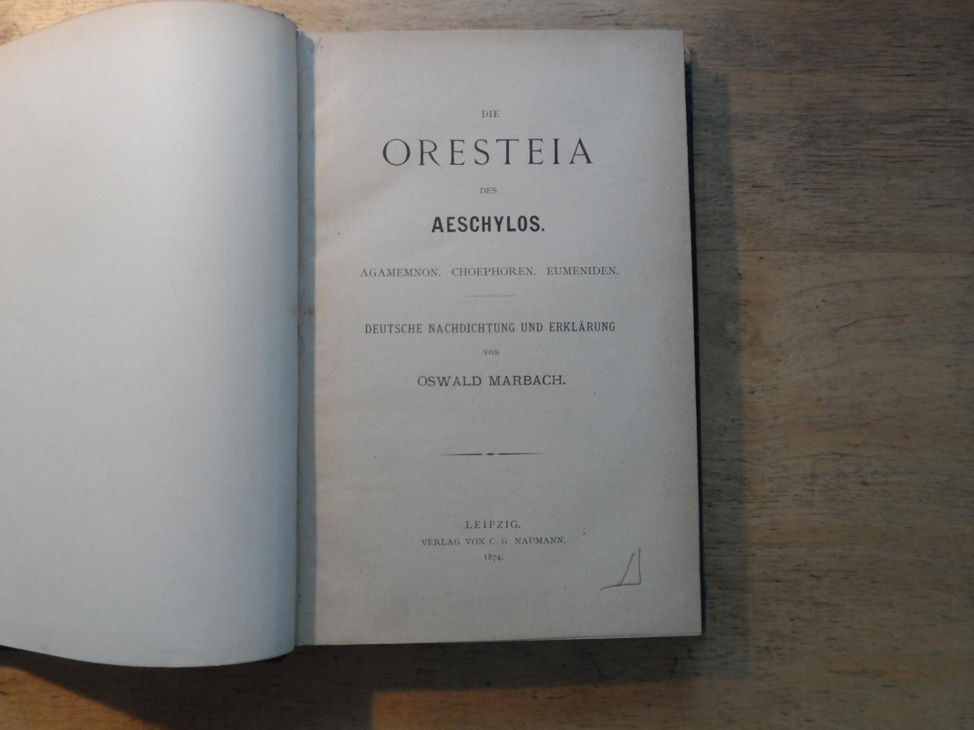 Die Oresta des Aeschylos - Agamemnon Choephoren Eumeniden