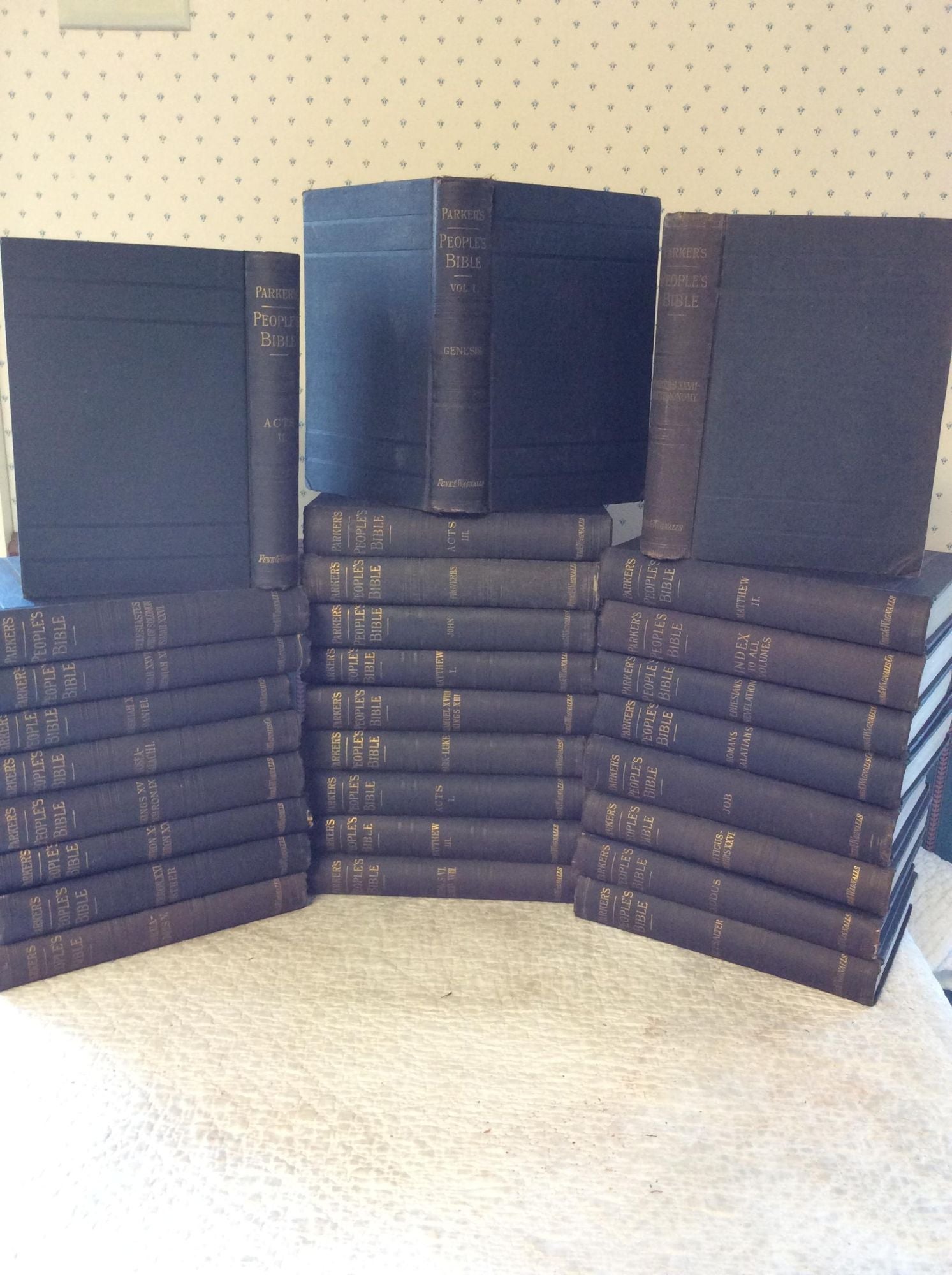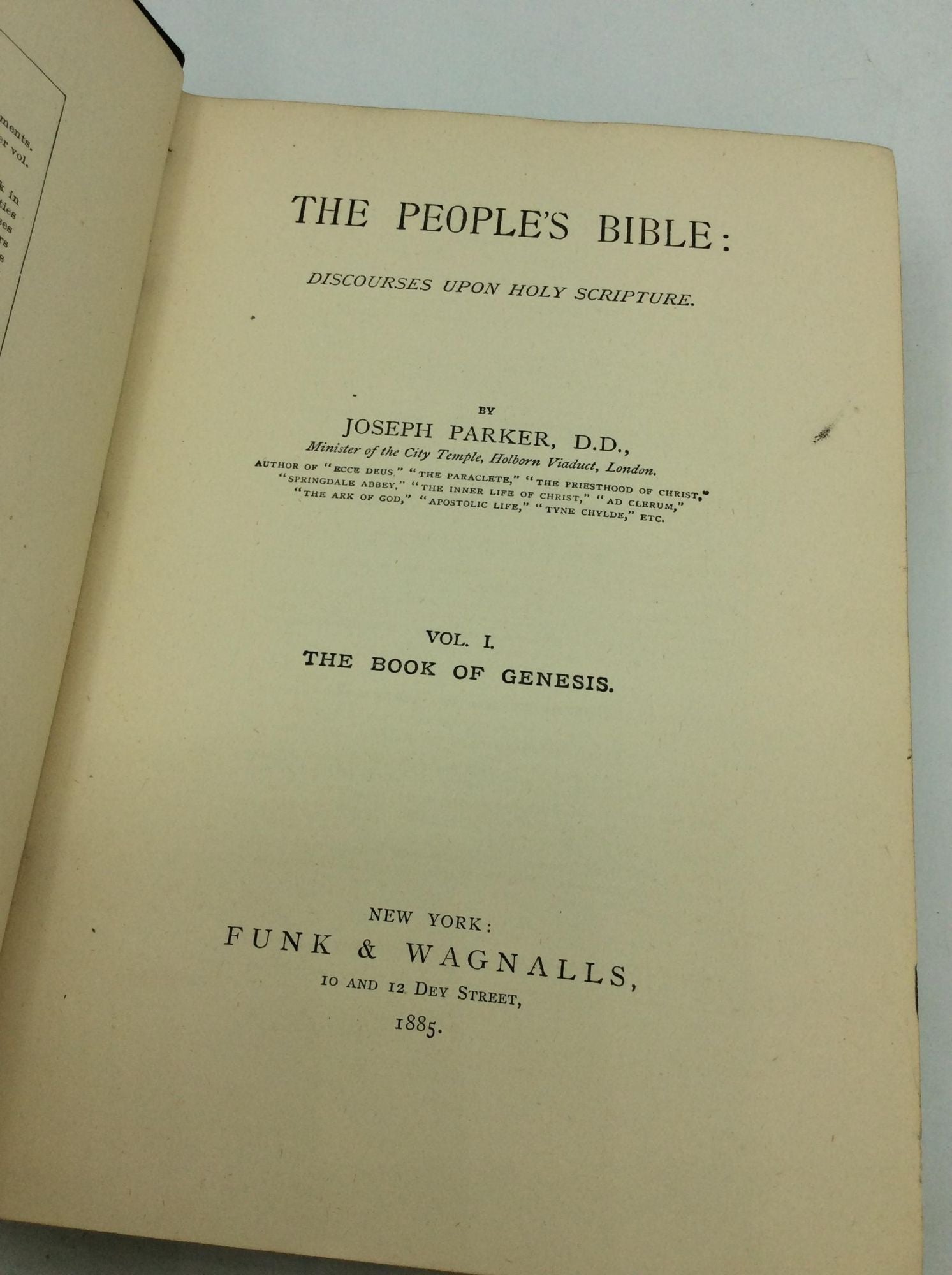 28 vols, including index. A complete set of twenty-eight hardcover books bound in black cloth. Good reading condition overall. Corners of boards and tips of spine are generally worn. Pastor's bookplate inside each volume's front cover, and some volumes have notes in pencil on the rear endpapers. Hinges of some volumes were cracked, but have been reglued, so the binding is tight enough for normal handling. Divots on the front board of Acts I. Ink spots and crayon scribbles on rear endpaper of Matthew III. Pencil marginalia on some pages, but majority of text is clean. Obviously well-used but still in good condition for reading and reference. Scarce complete set of this biblical commentary by Congregational minister Joseph Parker (1830-1902), a colleague of Henry Ward Beecher and Charles Spurgeon. Seller Inventory # 314337