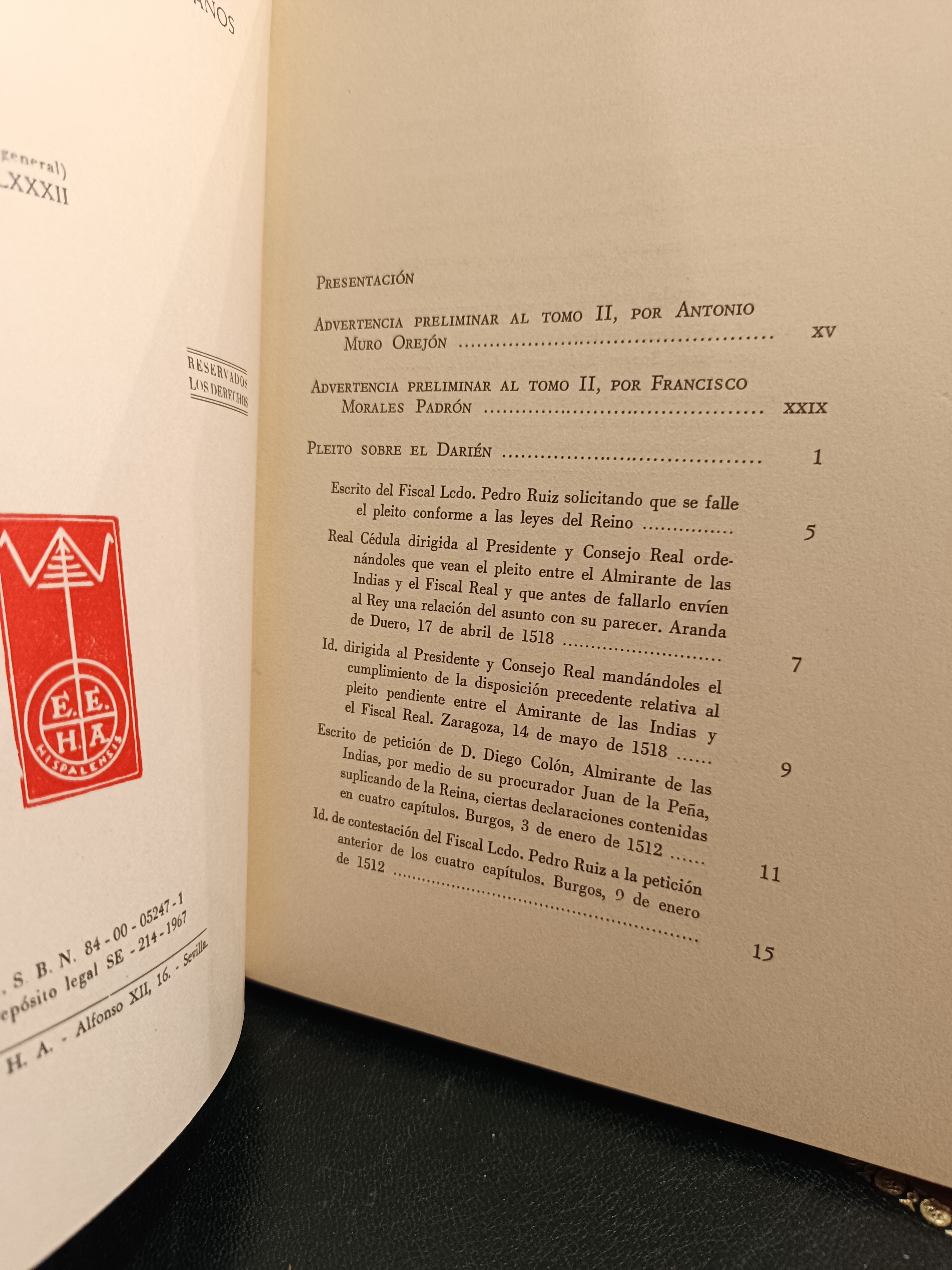 PLEITOS COLOMBINOS II. Pleito sobre el Darien. (1512-1519).