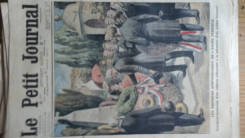 LES PREMIERS ANNIVERSAIRES DE L'ANNEE TERRIBLE. Touchant hommage d'un vétéran allemand à la mémoire d'un soldat francais.