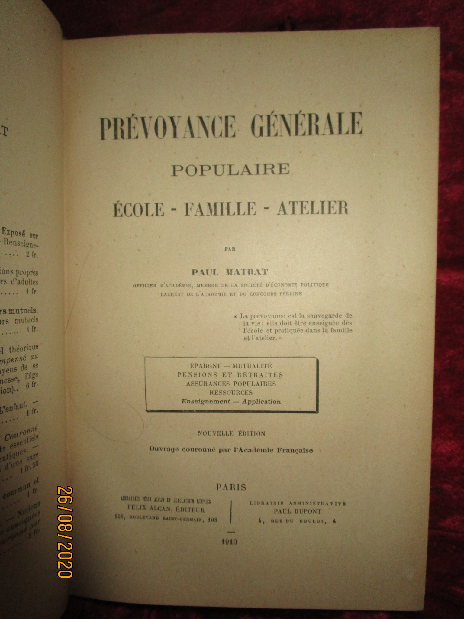 PREVOYANCE GÈNERALE POPULAIRE , ECOLE - FAMILLE - ATELIER