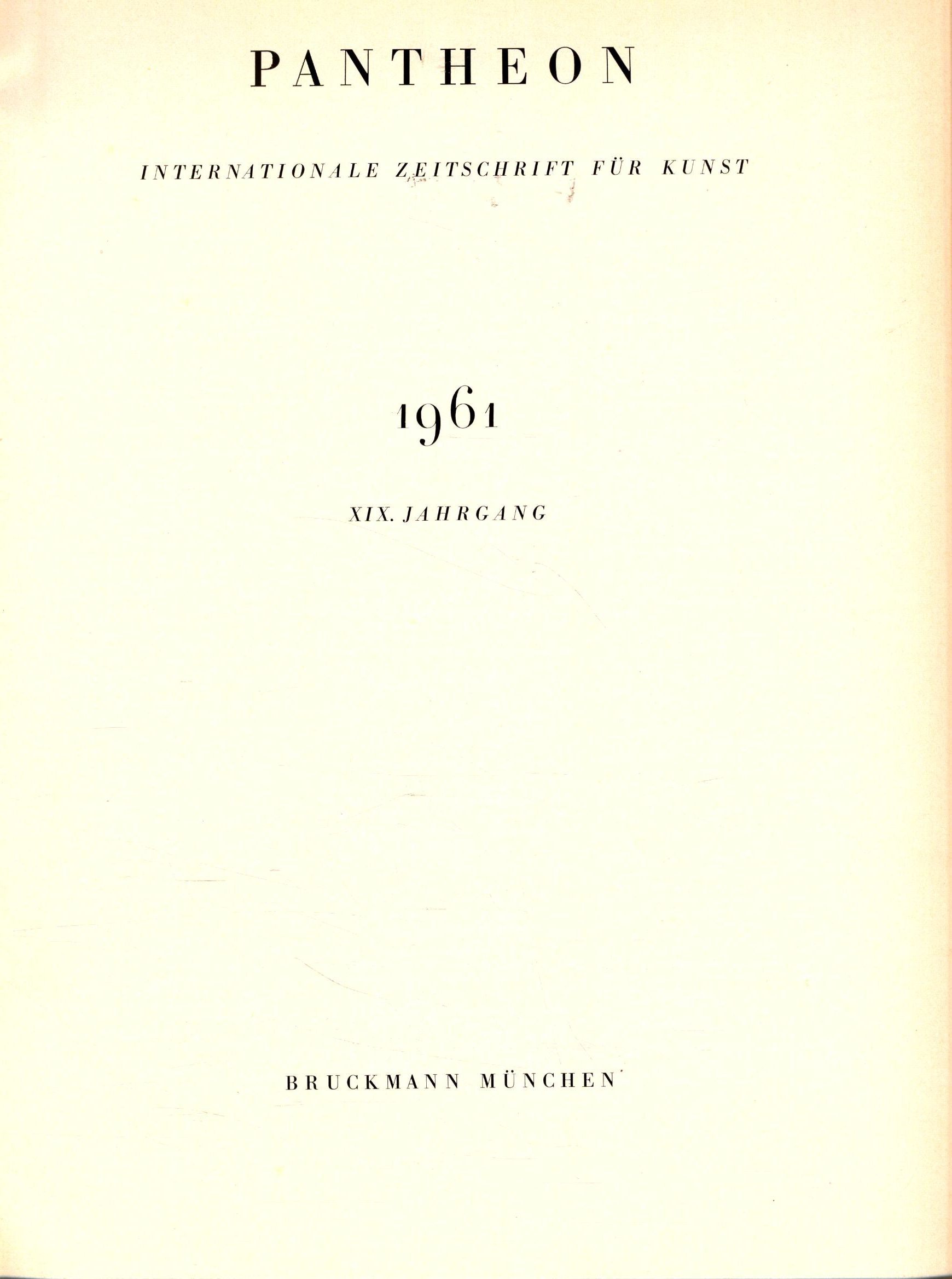 Pantheon Internationale Zeitschrift für Kunst 1961 XIX. Jahrgang