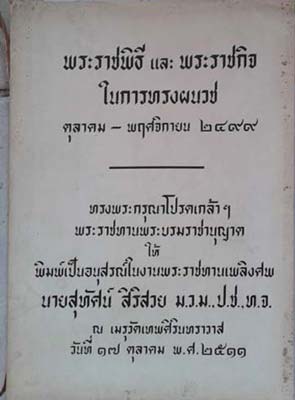 Phra Ratchapiti lae Phra Ratchakit nai karn song Panuad: State Ceremony and Works in Royalty to enter the priesthood, October - November 1956