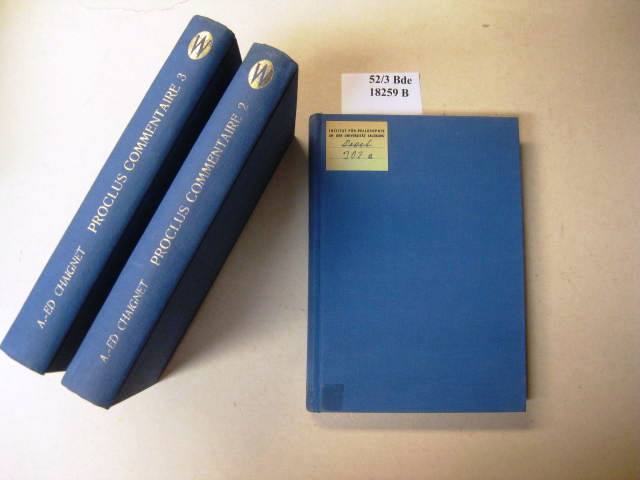 Proclus le Philosophe. Commentaire sur le Parménide. Suivi du commentaire anonyme sur les VII dernières hypothèses./ Tome Premier, Deuxieme, Troisieme.