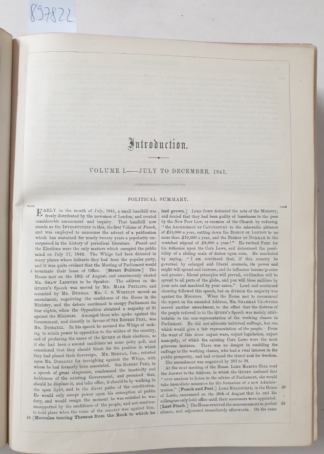 ca. 1000 Seiten, Ausgetragenes Bibliotheksexemplar der Universität zu Bonn mit Inventarnummern-Aufklebern auf dem Buchrücken, Buch ist in einem sehr guten Zustand, roter Halbleinen-Einband mit montiertem Original-Leder-Rücken mit Titelprägung in Gold, Einband altersbedingt etwas gebrauchsspurig, Buchrücken mit Buchschmuck (Kassetten in Gold) teilweise mit Abrieb, beiges Bezugspapier, Ecken minimal berieben, umlaufender Marmorschnitt, Papier in altersgemäßem sehr gutem Zustand, leicht gegilbt. Insgesamt hochwertig gestalteter Band der britischen Satirezeitschrift in sehr gutem Zustand. MIG-25-04BH Sprache: Englisch Gewicht in Gramm: 2655 4°, Bibliothekseinband in Halb-Leinen unter Verwendung des Original-Leder-Rückens. Seller Inventory # 1897822