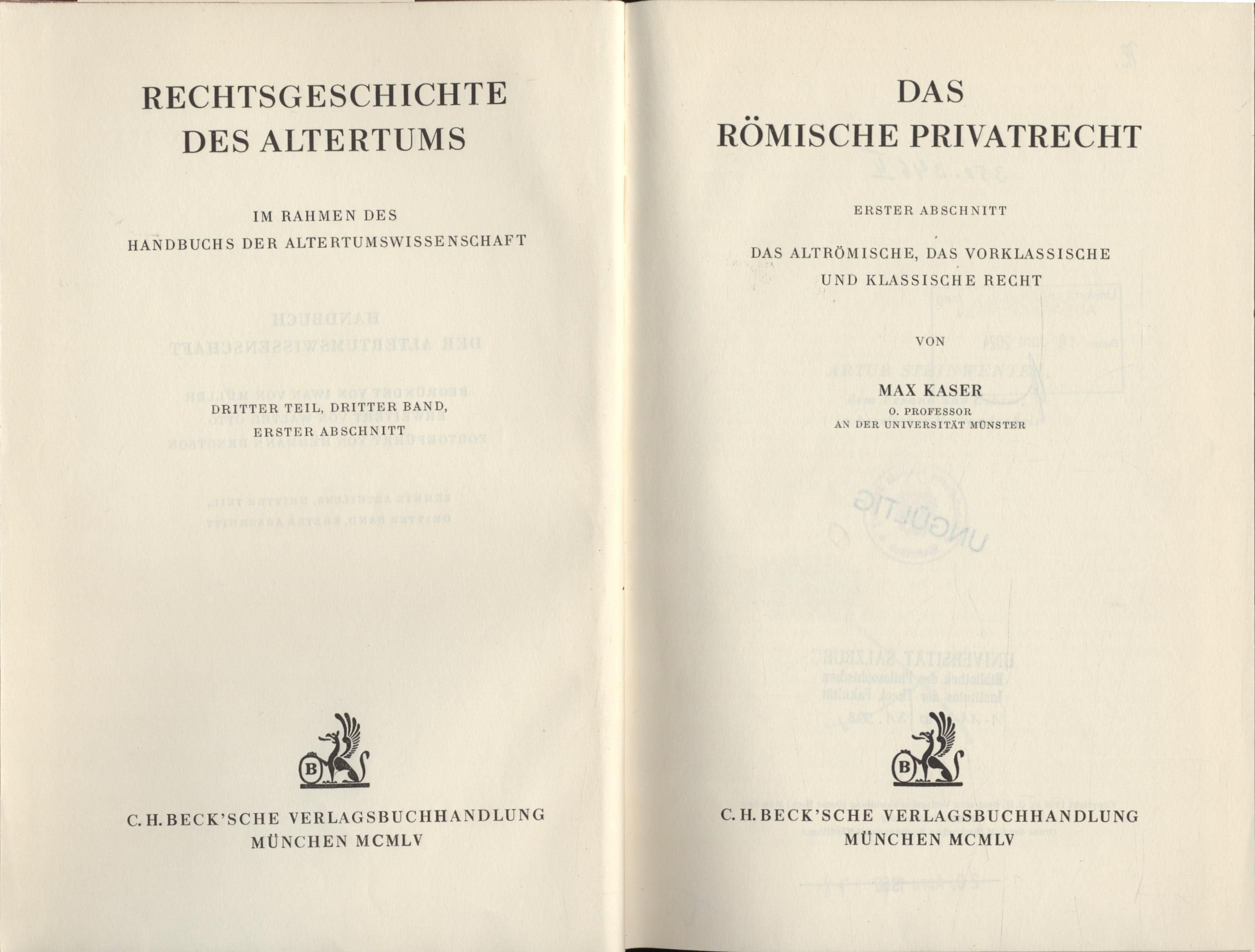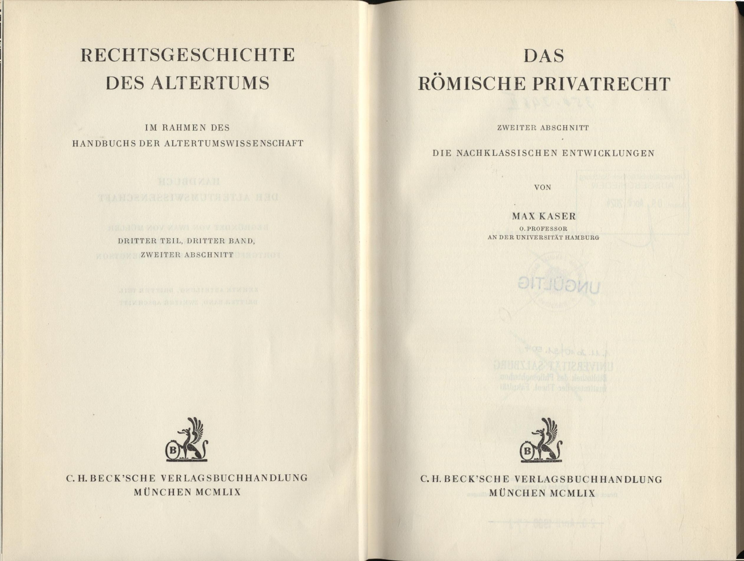 Publisher: C.H. Beck'sche Verlagsbuchhandlung 1955/59.