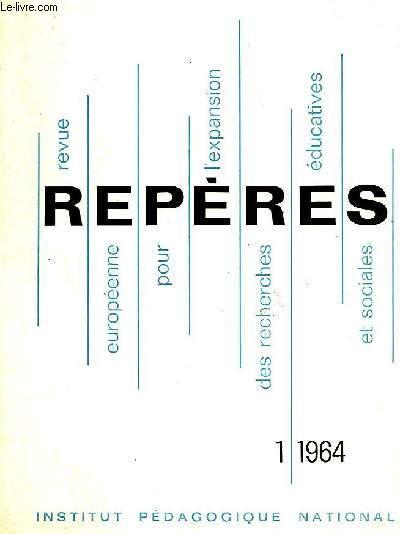 REPERES, REVUE EUROPEENNE POUR L'EXPANSION DES RECHERCHES EDUCATIVES ET SOCIALES, N° 1, JAN.-MARS 1964