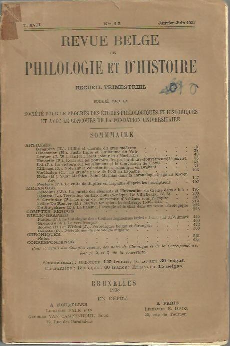 REVUE BELGE DE PHILOLOGIE ET D'HISTOIRE.