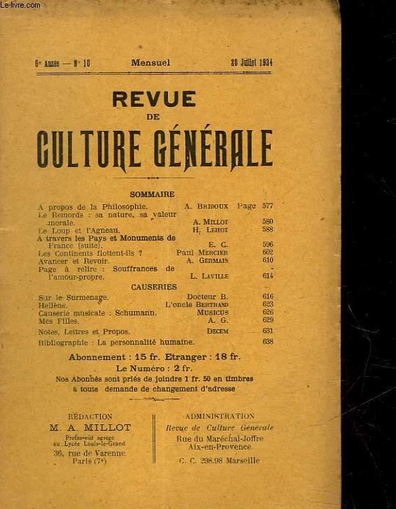 REVUE DE CULTURE GENERALE - 6° ANNEE - N° 10