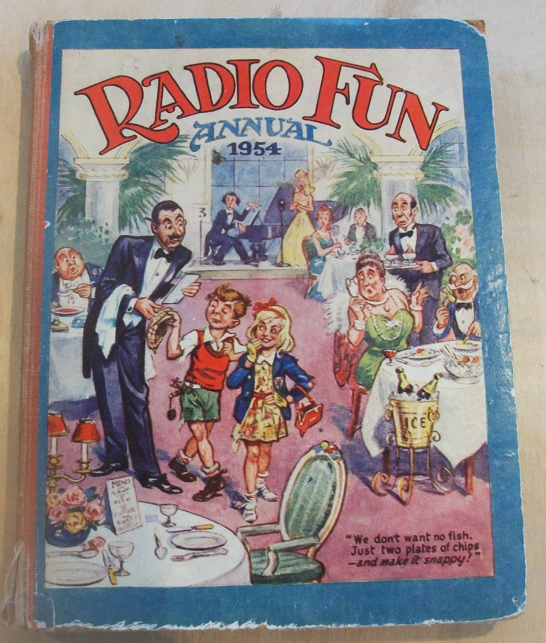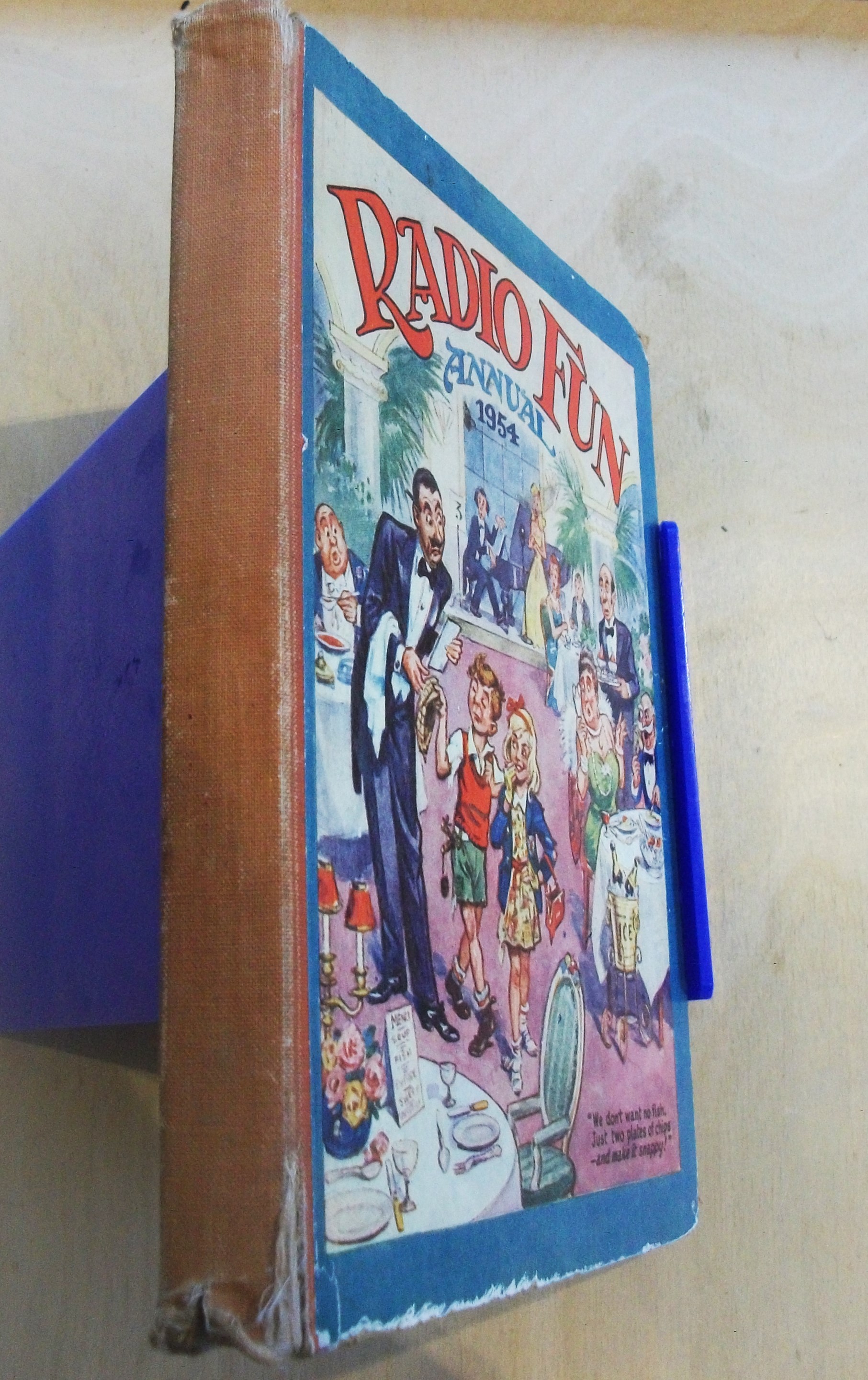 Add to basketRadio Fun Annual 1954. London: The Amalgamated Press, 1954. Hardback, Good. Illustrated boards, bumped to corners, rubbed to surfaces, with a small flag on the reverse coloured in. Red spine, faded, damaged to top and base. Biro signature scribbled out on front pastedown, replaced with pencilled address. First page in full colour, next four pages in three colours, then mostly b/w cartoons. Contents clean and bright. Tanning to final page of text, ownership signature to rear inside board. RightWayUp Books aims to provide accurate and detailed descriptions. All images are of the actual book for sale - no stock images are ever used. Thank you for looking at this listing.