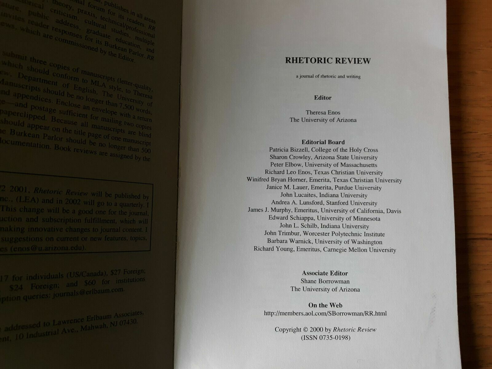Rhetoric Review Vol 19 Numbers 1/2 Fall 2000 University of Arizona