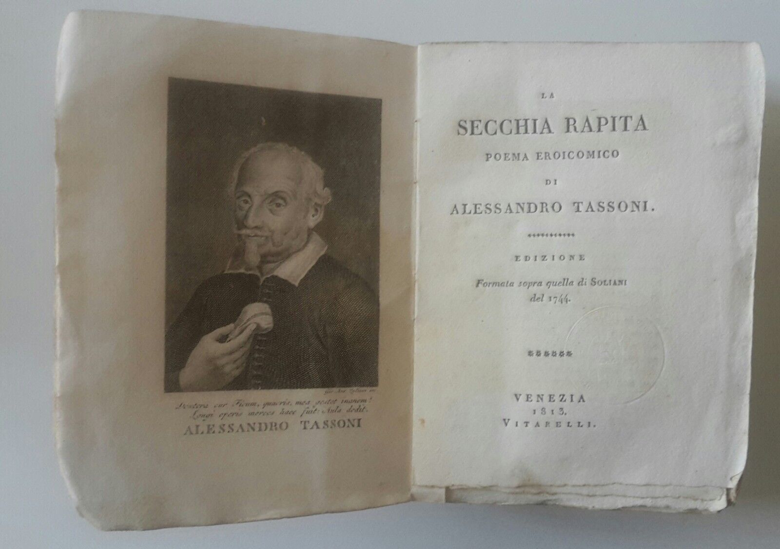 LA SECCHIA RAPITA POEMA EROICOMICO DI A. TASSONI VENEZIA 1813 VITARELLI