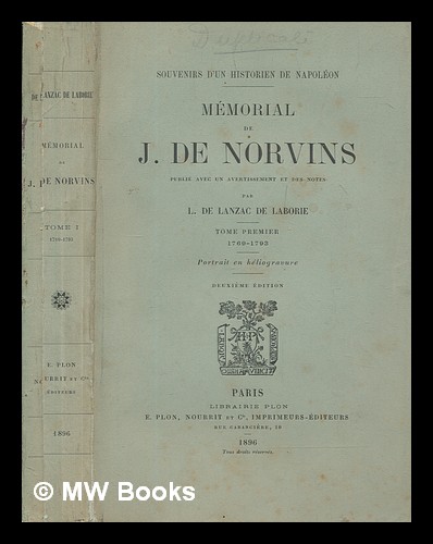 Souvenirs d'un historien de Napoléon : Mémorial de J. de Norvins. Publié avec un avertissement et des notes / par L. de Lanzac de Laborie - Volume 1
