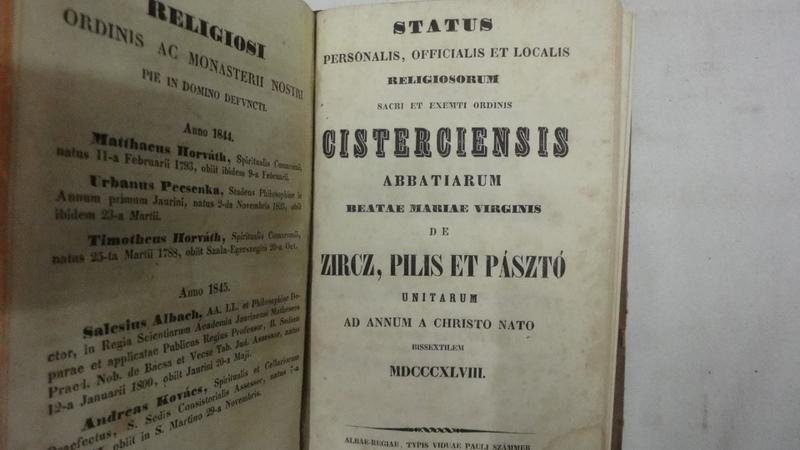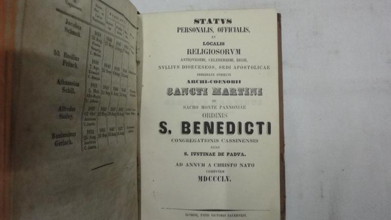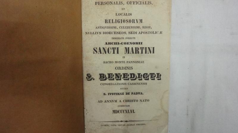 Status personalis, officialis et localis religiosorum antiquissimi, celeberimi, regii, nullius dioecesios, sedi apostolicae immeditai subjecti archi-coenobii Sancti Martini in sacro monte pannoniae ordinis S. Benedicti congregationes cassinensis alias S.