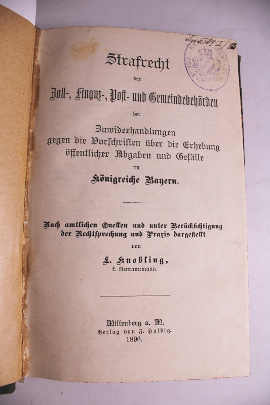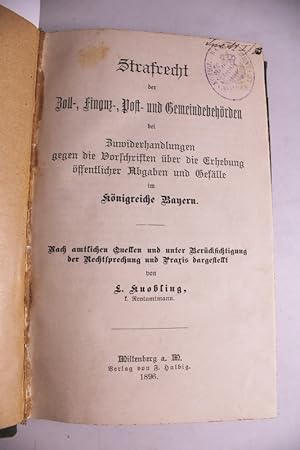 Strafrecht der Zoll-, Finanz-, Post- und Gemeindebehörden bei Zuwiderhandlungen gegen die Vorschriften über die Erhebung öffentlicher Abgaben und Gefälle im Königreiche Bayern. Nach amtlichen Quellen und unter Berücksichtigung der Rechtsprechung und Praxis dargestellt.