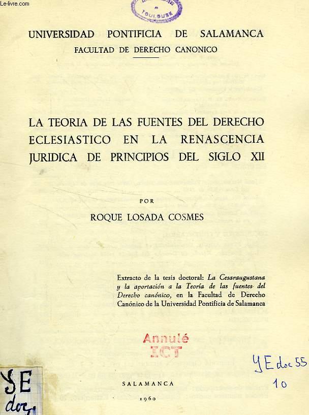 LA TEORIA DE LAS FUENTES DEL DERECHO ECLESIASTICO EN LA RENASCENCIA JURIDICA DE PRINCIPIOS DEL SIGLO XII