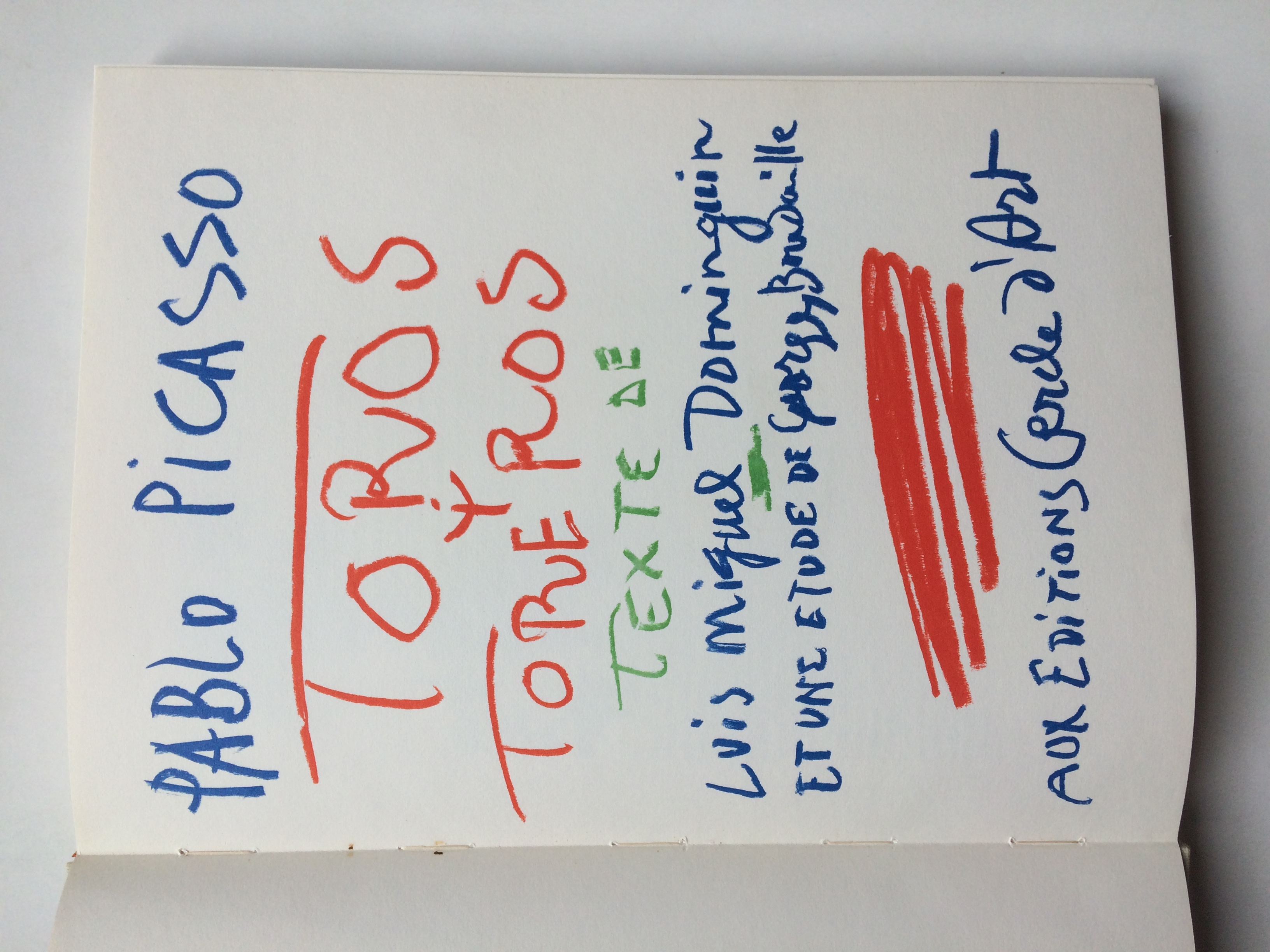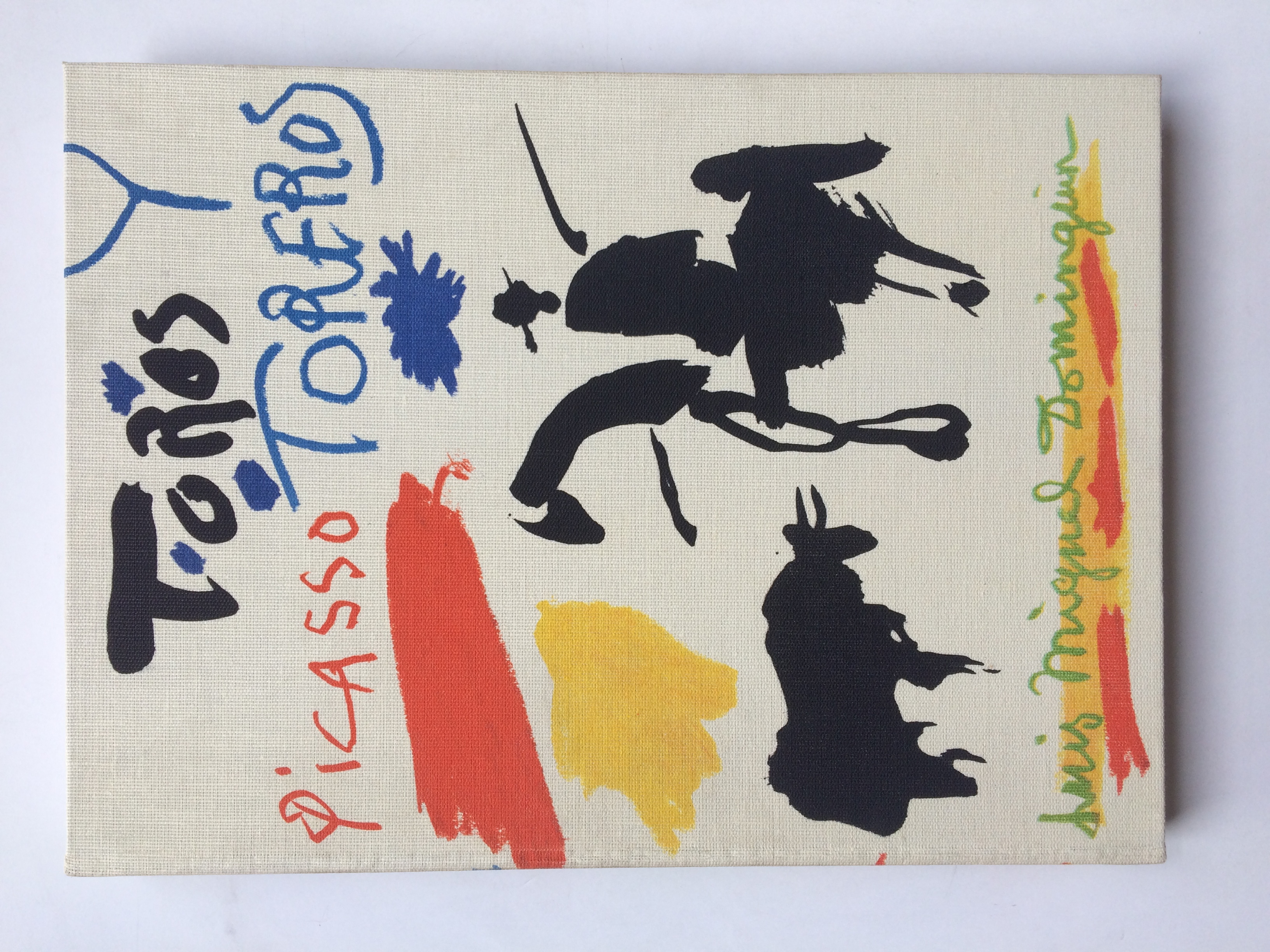 Add to basketSeconde édition (la première date de 1961) de l'album consacré aux dessins, lavis et croquis de Picasso sur le thème de la corrida né de la collaboration étroite et amicale entre l'artiste et l'éditeur. Avec une présentation de Luis Miguel Dominguin en français et espagnol - French & spanish text - suivie d'une introduction de Georges Boudaille et de la suite des illustrations de Picasso dont 16 en couleurs vraisemblablement lithographiées. Lexique tauromachique en fin de volume. Achevé d'imprimer au second trimestre 1962. Ouvrage imprimé sur fort Vélin. Non paginé. Sous étui illustré (présentant d'infimes défauts). Format : 28 x 39 cms. PLEASE NOTE : because of the weight (more than 2kg) SHIPMENT to europe will be 25 euros and 65 euros to the rest of the world.