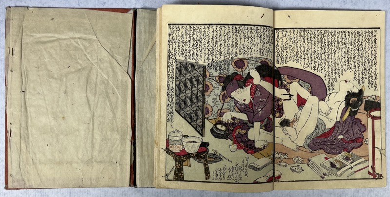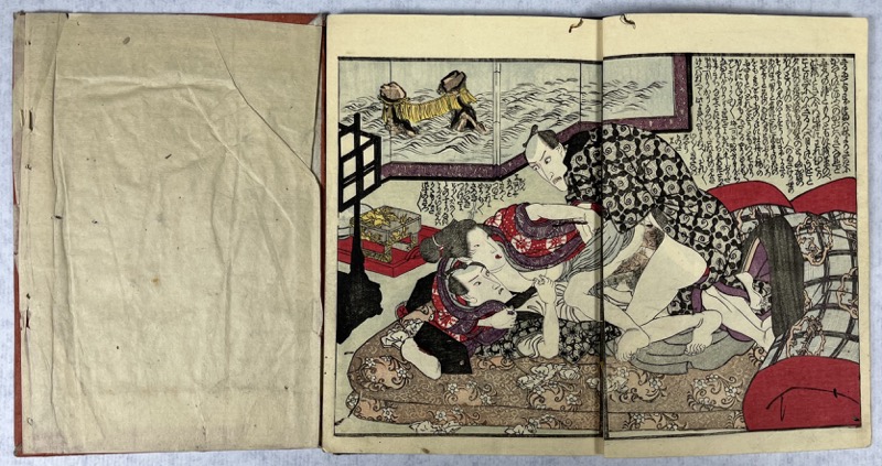 Add to basketIn-8 22 x 15,5 cm. Reliure à la japonaise, [22] pp., 8 estampes dont 6 sur double page. Exemplaire en bon état. Utagawa Kuniyoshi ( , Utagawa Kuniyoshi?) (1797-1861), est l'un des derniers grands maîtres japonais de l'estampe sur bois ('ukiyo-e'). Excella dans tous les genres, il reste surtout le maître incontestable des estampes érotiques.