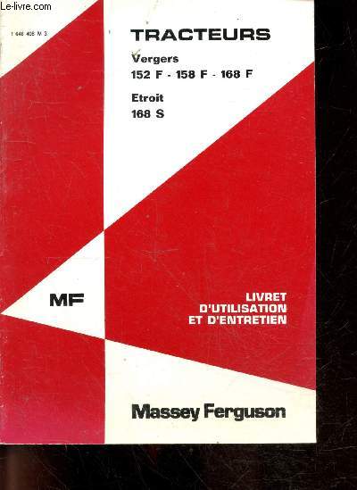 Tracteurs vergers 152 F - 158 F - 168 F - etroit 168 S - livret d'utilisation et d'entretien - securite, rodage, pieces de rechange, service apres vente, commandes et instruments de controle, contenances, entretien, caracteristiques.