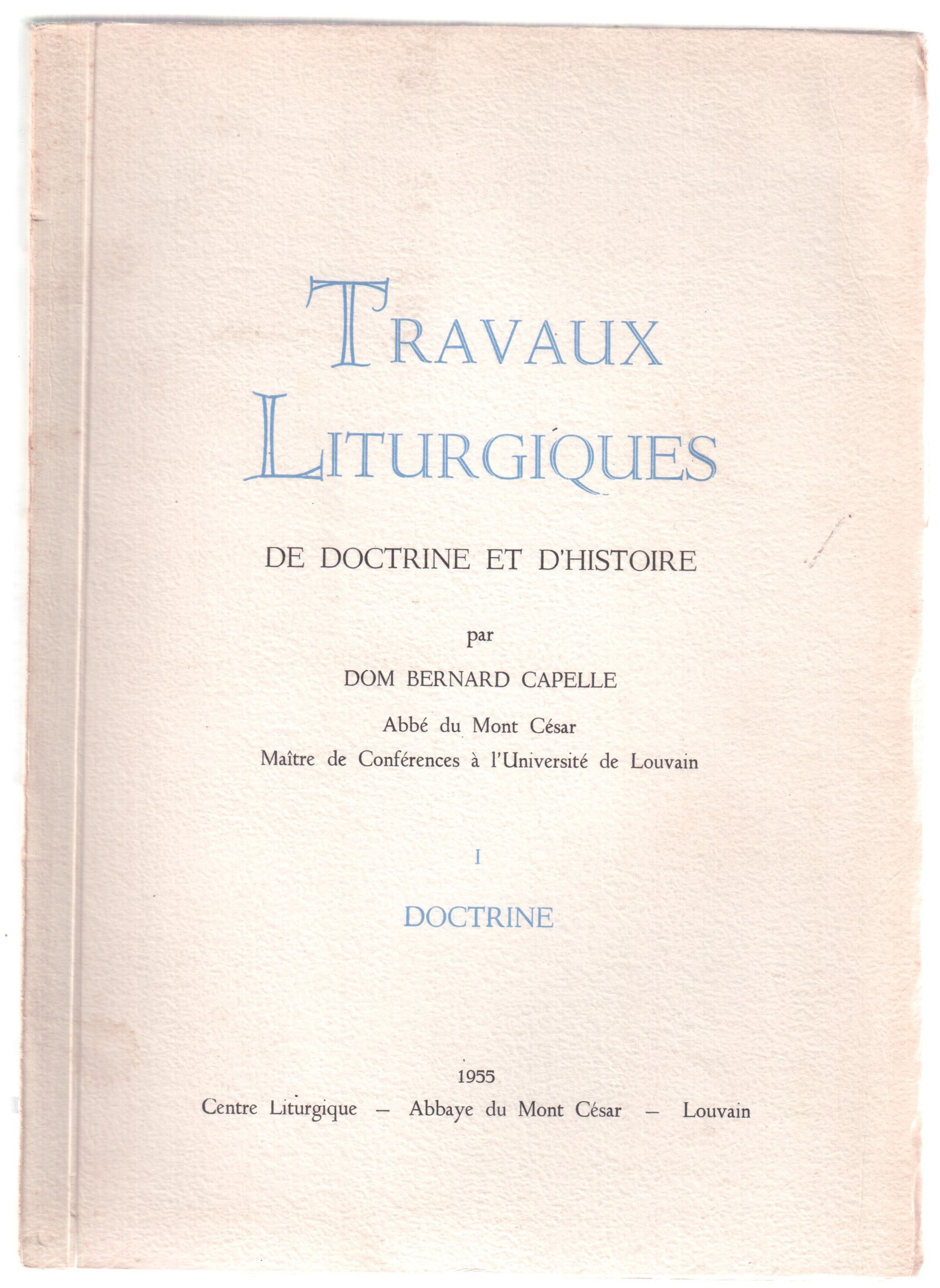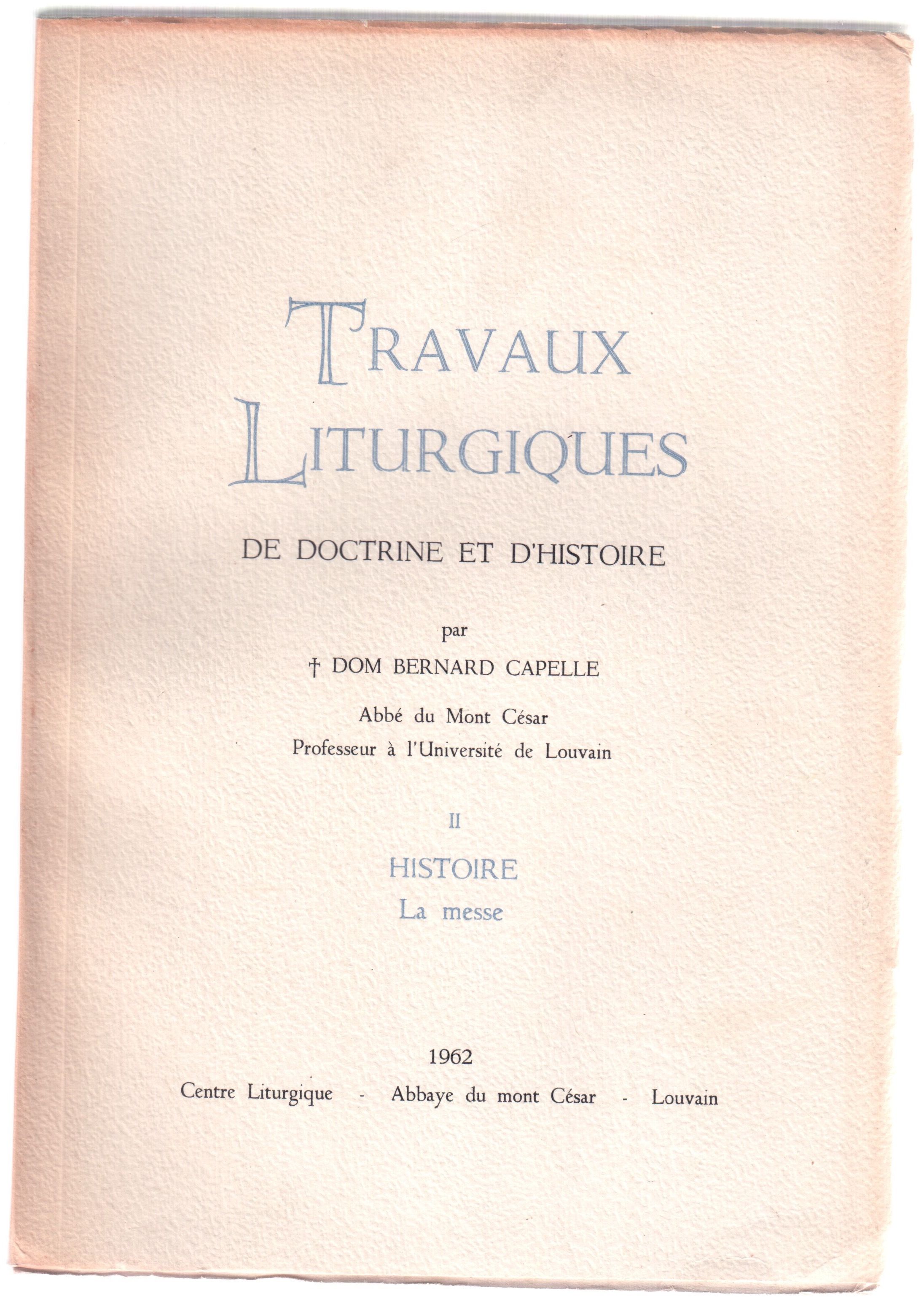 Travaux Liturgiques de doctrine et d'histoire I. Doctrine II. Histoire La messe