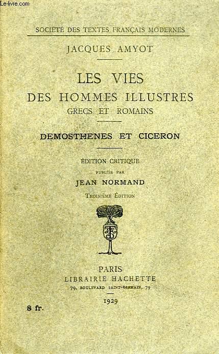 LES VIES DES HOMMES ILLUSTRES GRECS ET ROMAINS, DEMOSTHENE ET CICERON