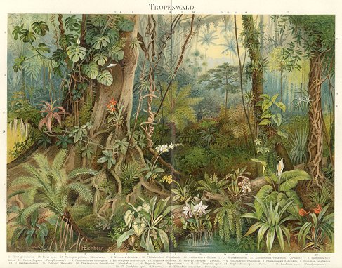 1894 Chromolithographic Print of TROPICAL VEGETATION
