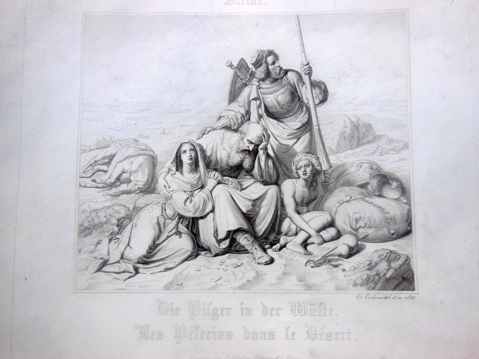 Antiguo grabado - Old Gravure : DIE PILGER IN DER WÜSTE. STILKE