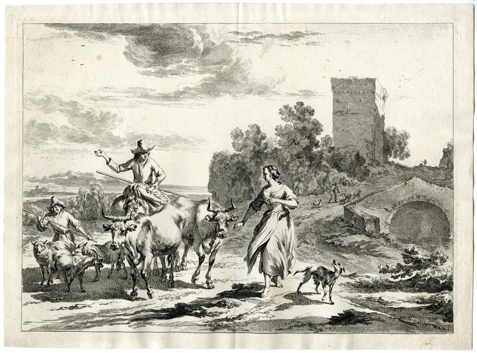 CATTLE-HERDING-COW-SHEEP-DOG-GOAT Johannes VISSCHER after BERGHEM, c.1660