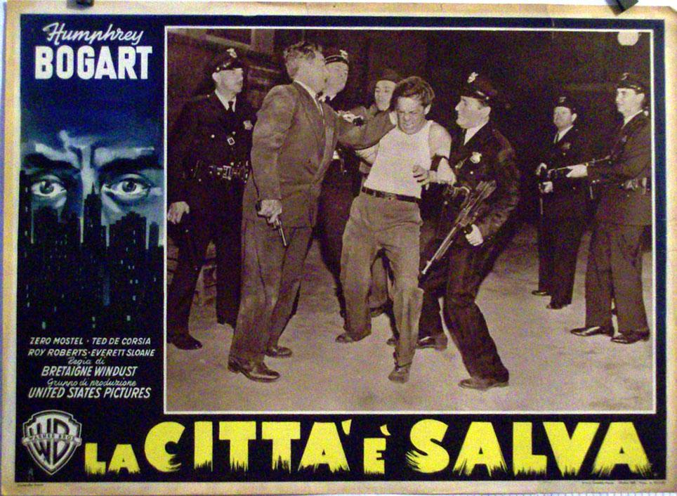 LA CITTA E SALVA - 1951Dir: BRETAIGNE WINDUSTCast: HUMPHREY BOGARTZERO MOSTELTED DE CORSIAEVERETT SLOANEITALIAFB. 13 x 17 INCHES. 34 x 49 CM.PLEASE CHECK THE PICTURE FOR CONDITION