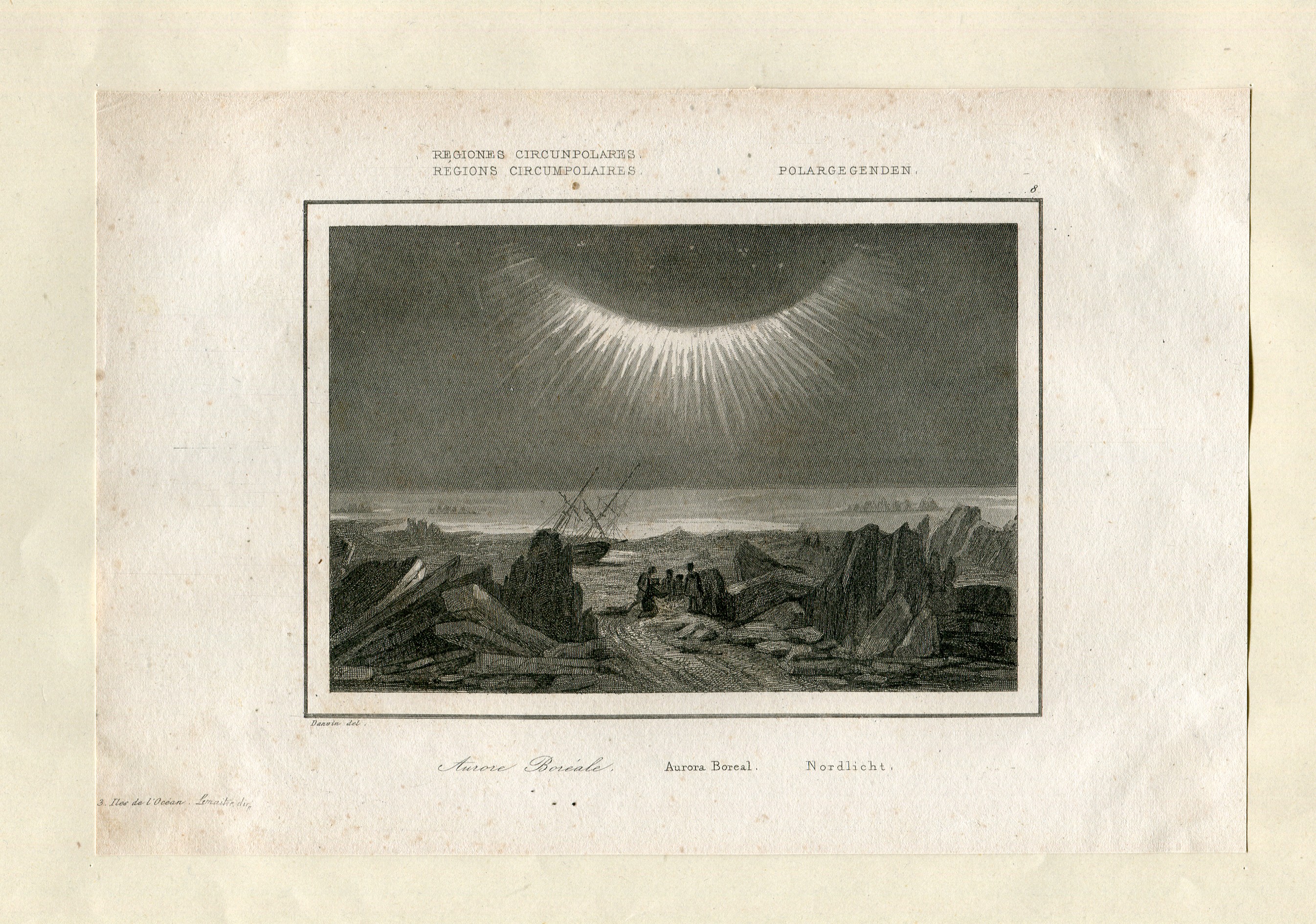 Circulos Polares. Aurora boreal grabado dibujado por Danvin.