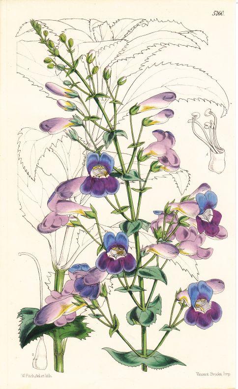 Curtis - Pentstemon spectabilis. Kolorierte Lithographie aus Botanical Magazine Nr. 5260.
