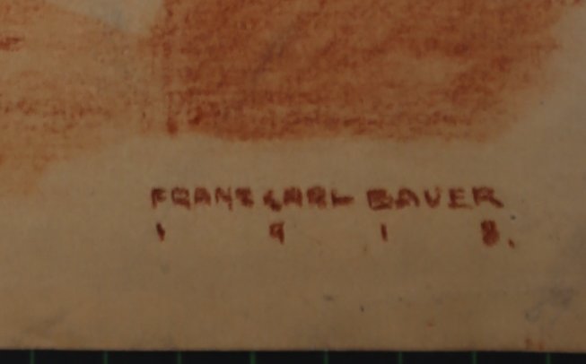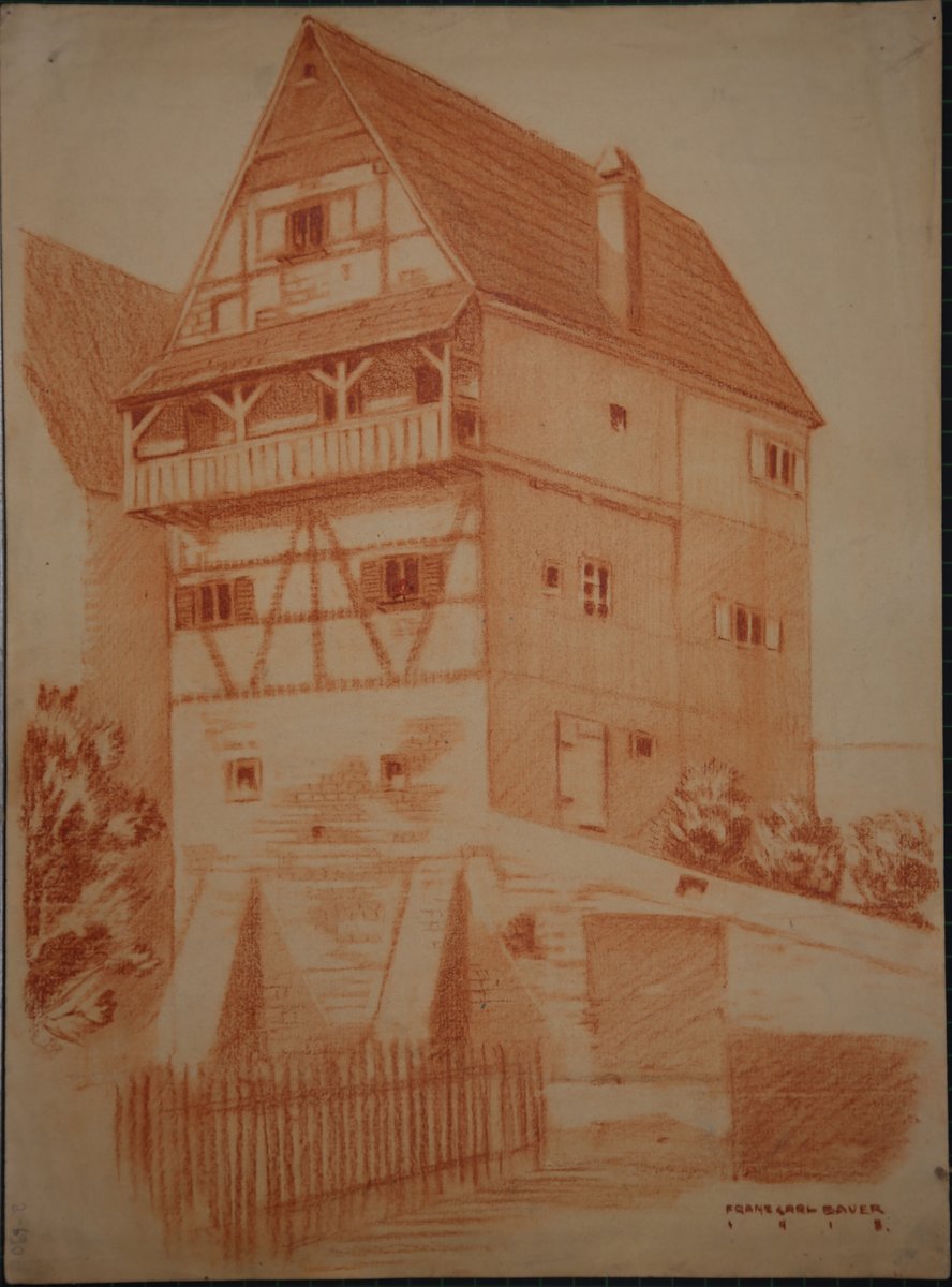 Fachwerkhaus. Rötelzeichnung. Rechts unten signiert "Franz Carl Bauer