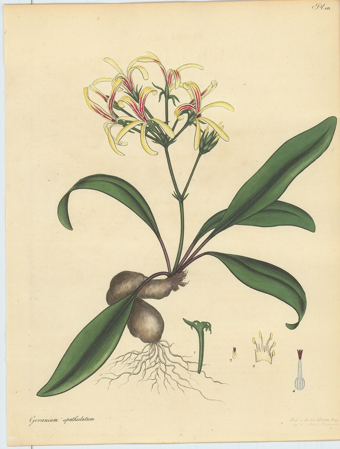 Geranium Spathulatum. Spatula-leaved Geranium. [From] The Botanist's Repository Comprising Colour'd Engravings of New and Rare Plants Only. With Botanical Descriptions in Latin and English after the Linnæan System.