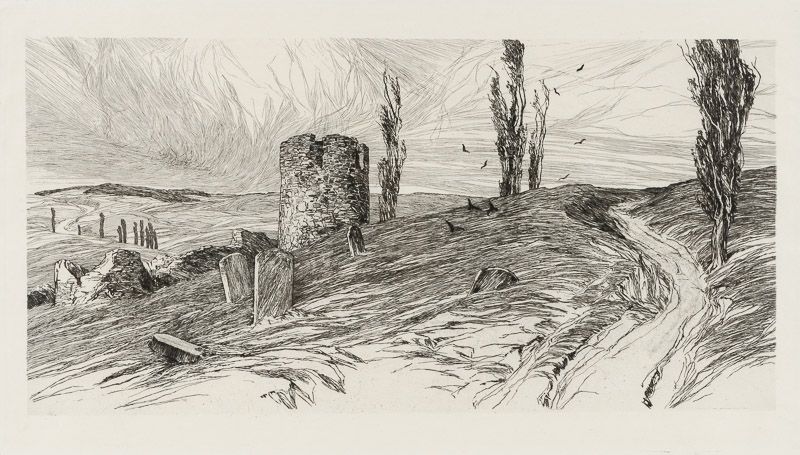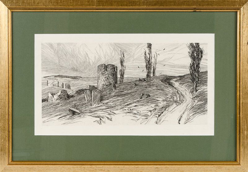 Add to basketRadierung auf imitiertem Japanpapier. Beautifully Framed. Size of frame with the Etching / Radierung: 52 cm x 75 cm. Actual Size / Groesse der Radierung: 29 x 53.5 cm. Excellent condition ! [Graepler 38] Otto Ubbelohde (* 5. Januar 1867 in Marburg an der Lahn; 8. Mai 1922 in Goßfelden) war Maler, Radierer und Illustrator. Teile seines Werkes werden dem Jugendstil zugeordnet. Otto Ubbelohde wuchs in Marburg auf. Sein Vater August Ubbelohde war Professor für römisches Recht an der Universität Marburg. Das Geburtshaus stand in unmittelbarer Nähe zur Elisabethkirche in der Elisabethstr. 9. Es wurde 1966 abgerissen. Die wohl durch die Familie der Mutter Therese, geb. Unger, ererbte künstlerische Begabung zeigte sich früh, doch gab der Vater dem Sohn nur ungern die Erlaubnis, sich nach dem bestandenen Abitur am Gymnasium Philippinum Marburg zum Maler ausbilden zu lassen. Nach kurzem Aufenthalt an der Kunstakademie der Großherzoglich Sächsischen Kunstschule Weimar (heute Bauhaus-Universität Weimar) wurde Otto Ubbelohde von 1884 bis 1890 an der Münchner Kunstakademie Schüler von Gabriel von Hackl, Johann Caspar Herterich, Wilhelm von Diez und Ludwig von Löfftz. Er wohnte mehr als ein Jahrzehnt in München und hatte Kontakt zur Künstlerkolonie Dachau. Von München aus reiste er 1889 nach Worpswede, wo sich gerade die Künstlerkolonie Worpswede bildete; 1894/95 arbeitete er nochmals dort. In den dazwischen liegenden Jahren hielt er sich im Sommer zeichnend und malend am Neckar und auf der Insel Reichenau auf. Nach der Heirat im November 1897 mit der aus Bremen stammenden Hanna Unger, einer Nichte des Kupferstechers und Radierers William Unger, und dem im Jahr darauf folgenden Tod seines Vaters baute er in Goßfelden bei Marburg ein Atelier- und Wohnhaus. Am Anfang wohnte das Ehepaar nur im Sommer dort, nach Fertigstellung ab 1900 jedoch ständig. Heute ist das denkmalgeschützte Haus Sitz der Otto-Ubbelohde-Stiftung und beherbergt das Museum Haus Otto Ubbelohde. Zudem dient es als Forschungsstätte. Ubbelohde trat seit ca. 1900 mit seiner Gattin Hanna Ubbelohde als Kunstgewerbler hervor. Sie schufen Wandteppiche, die in der Scherrebecker Webeschule geknüpft wurden, Wandschirme für das Schlesische Museum für Kunstgewerbe in Breslau und schuf Entwürfe für Stickereien. Studienreisen und Aufenthalte in München nahmen seit dieser Zeit von Goßfelden aus ihren Ausgang. 1902 wurde er Mitglied der Willingshäuser Malerkolonie. 1908 reiste er nach Lübeck, wo er die Illustrationen für einen Stadtführer zeichnete. Seine erste eigene Ausstellung hatte er 1912 in Gießen mit 40 Ölgemälden, Zeichnungen und Radierungen. Aus Anlass seines 50. Geburtstags im Jahre 1917 verlieh ihm die Universität Marburg den Professorentitel und ernannte ihn am 6. Juli 1921 zum Ehrensenator. Am 24. Juli 1918 ernannte ihn die Philosophische Fakultät der Universität Gießen zum Ehrendoktor, gleichzeitig und zusammen mit Alfred Bock; das Ehrendoktordiplom ist datiert vom 29. Juli 1918. Neben dem Malen betrieb Ubbelohde vor allem das Zeichnen, zum Teil kontinuierlicher Einnahmen wegen. Es entstanden zahllose gezeichnete Druckvorlagen für Buchillustrationen, Kalender, Postkarten, Exlibris und ähnliches; daneben Radierungen. Durch Arbeiten dieser Art, insbesondere durch seine Illustrationen zu einer 1909 erschienenen Ausgabe der Kinder- und Hausmärchen der Brüder Grimm des Leipziger Turm-Verlags, wurde Ubbelohde weltweit bekannt. An den 448 Illustrationen des Märchenbuchs arbeitete er drei Jahre lang, von 1906 bis 1909. Seine Neigung und sein künstlerisches Streben galten vornehmlich der Malerei. Sie nimmt im Werk des Künstlers einen breiten und sehr bedeutenden Raum ein. Obwohl zur Porträtmalerei hervorragend begabt, hat Ubbelohde vor allem Landschaften und Stillleben geschaffen. Die Landschaften Hessens, insbesondere solche im weiteren Umkreis Marburgs, haben in ihm ihren unübertroffenen Schilderer gefunden. Martin Heidegger ließ sich von Ubbelohde einen Lodenanzug mit Kniebundhosen.