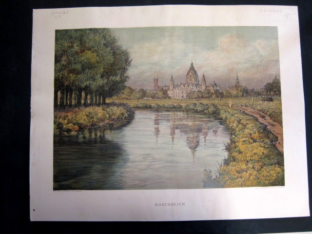 Maschblick. Blick über die Leinemasch auf das Neue Rathaus, links die Marktkirche.