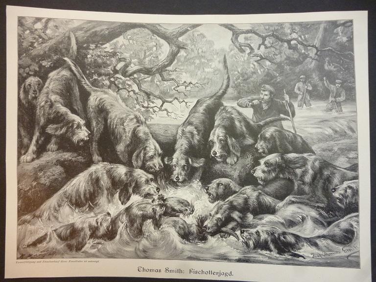 Orig. Holzstich: Fischotterjagd Jagd Thomas Smith.