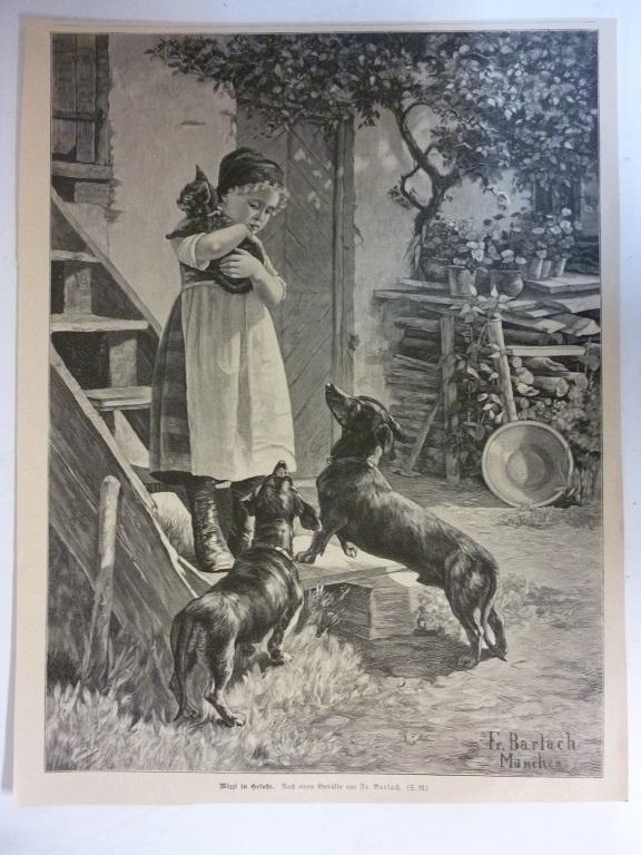 Orig. Holzstich Hunde. Mizzi in Gefahr. Gemalt von Fr. Barlach