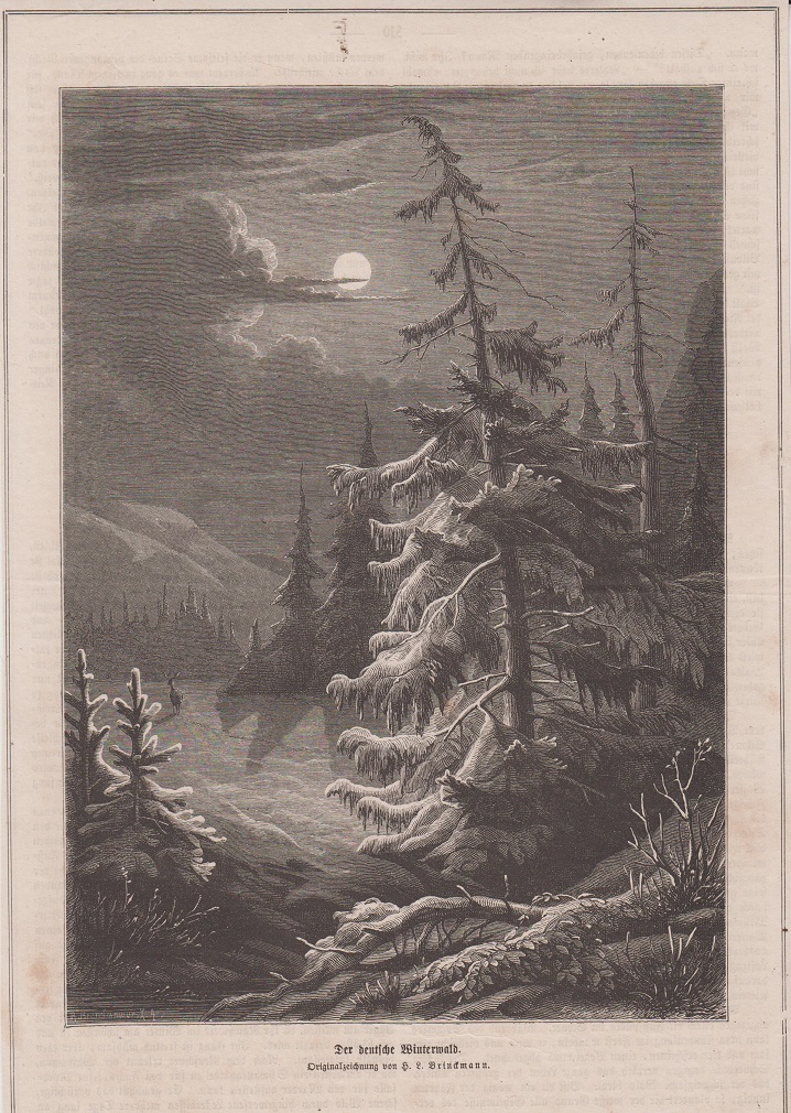 Orig. Holzstich: Der deutsche Winterwald. Originalzeichnung von H. L. Brinckmann.