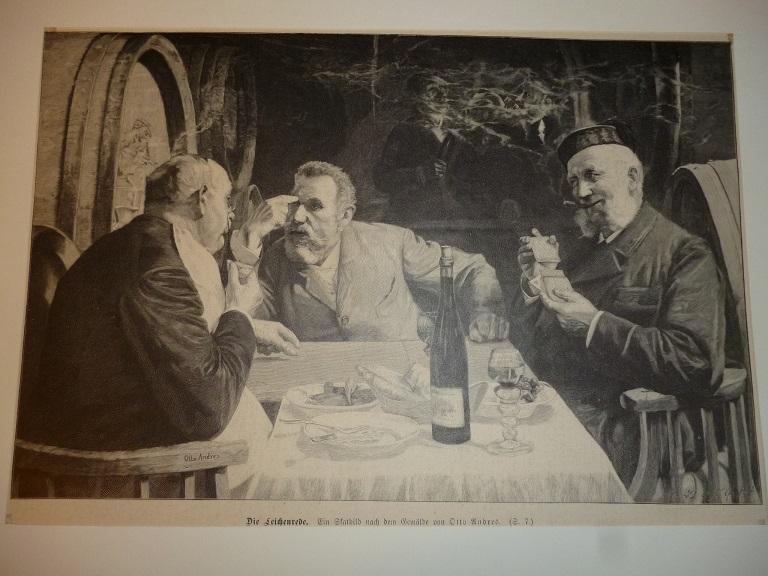 Orig. kolorierter Holzstich - Würfelspiel/Kartenspiel - Die Leichenrede